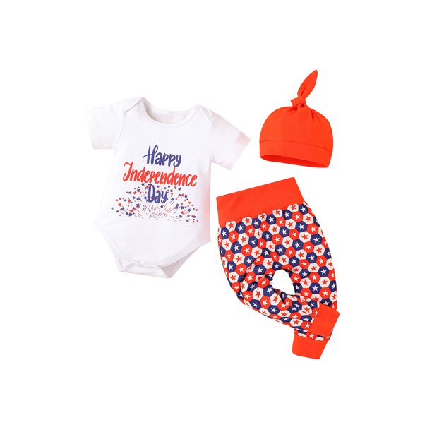 Ziyixin Infant Baby Boy Girl 4th Of July Outfits Short Sleeve Letter Romper Pants Hat 3pcs Independence Day Clothes Walmart Com Walmart Com